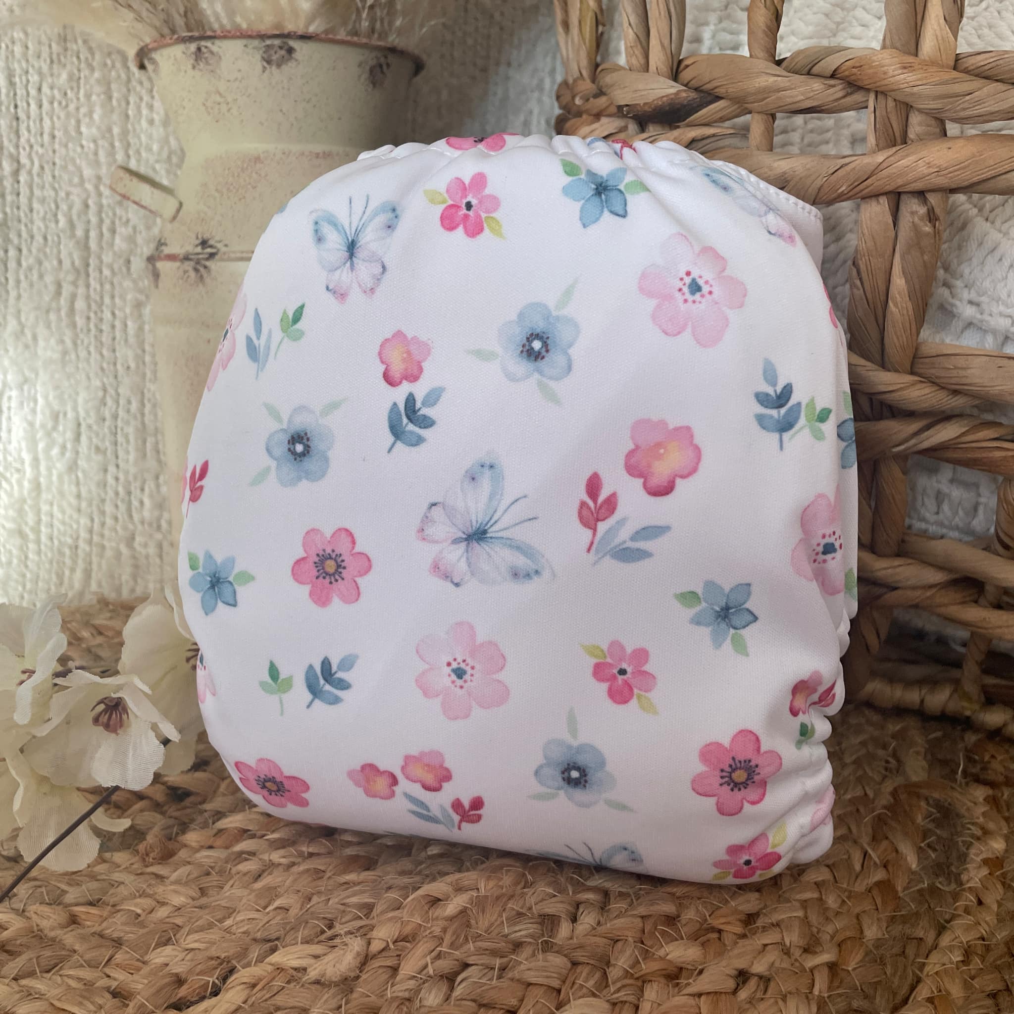 Couche lavable | GRANDE taille | Fleurs candides (Tout motif)