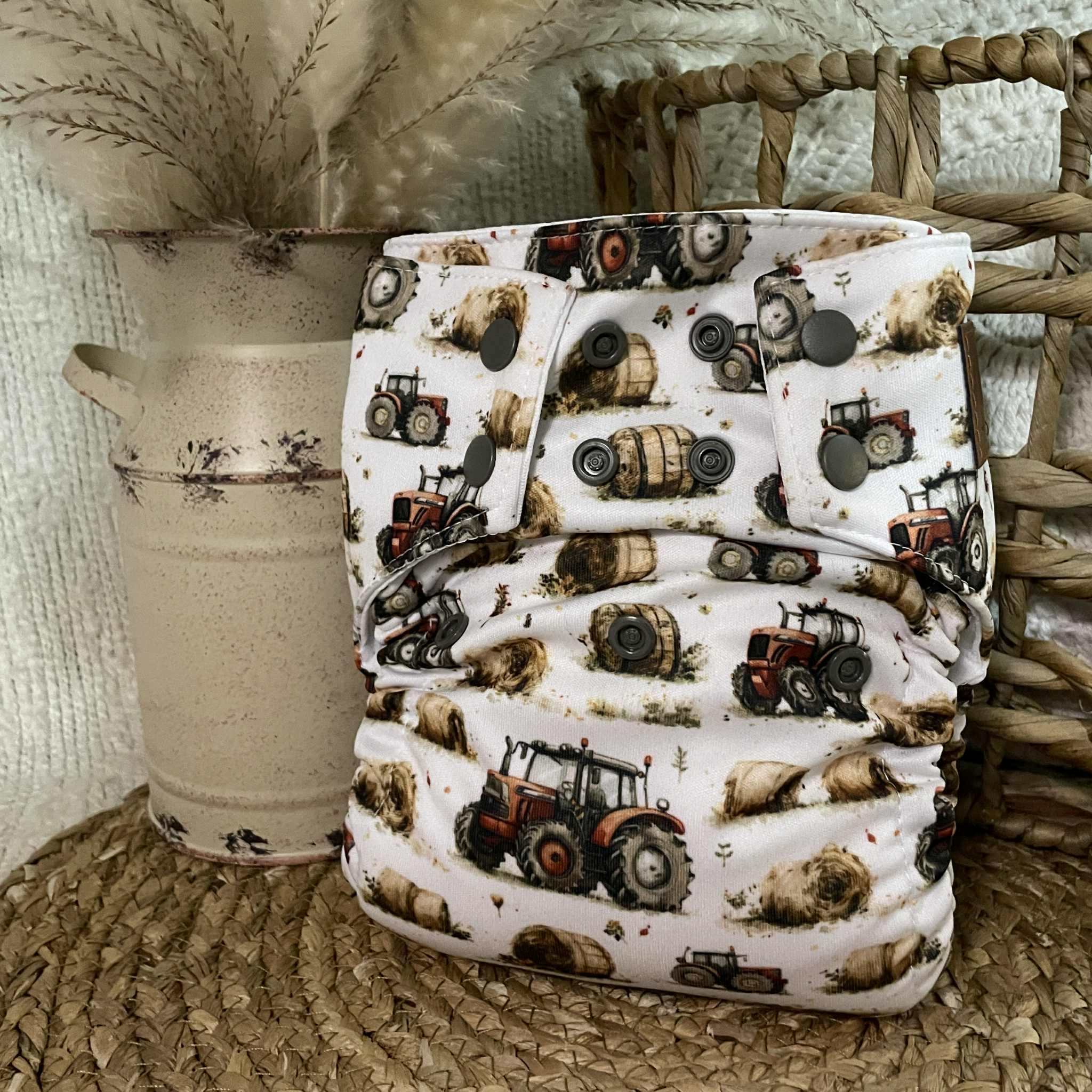 L’extérieur de la couche est fabriqué d'un polyester à motif sur toute la surface de la couche et celui-ci est entièrement doublé de tissu imperméable (PUL) 100% polyester. Notre couche tout motif est plus mince que notre couche wrap tout en étant aussi étanche !