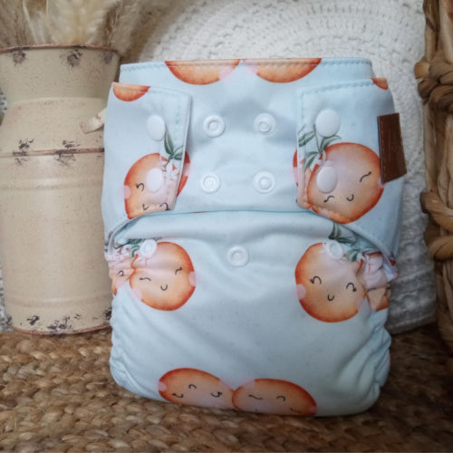 L’extérieur de la couche est fabriqué d'un polyester à motif sur toute la surface de la couche et celui-ci est entièrement doublé de tissu imperméable (PUL) 100% polyester. Notre couche tout motif est plus mince que notre couche wrap tout en étant aussi étanche !