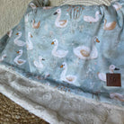 Un côté motif en minky imprimé au Québec ou en Amérique du Nord (pour certains motifs)