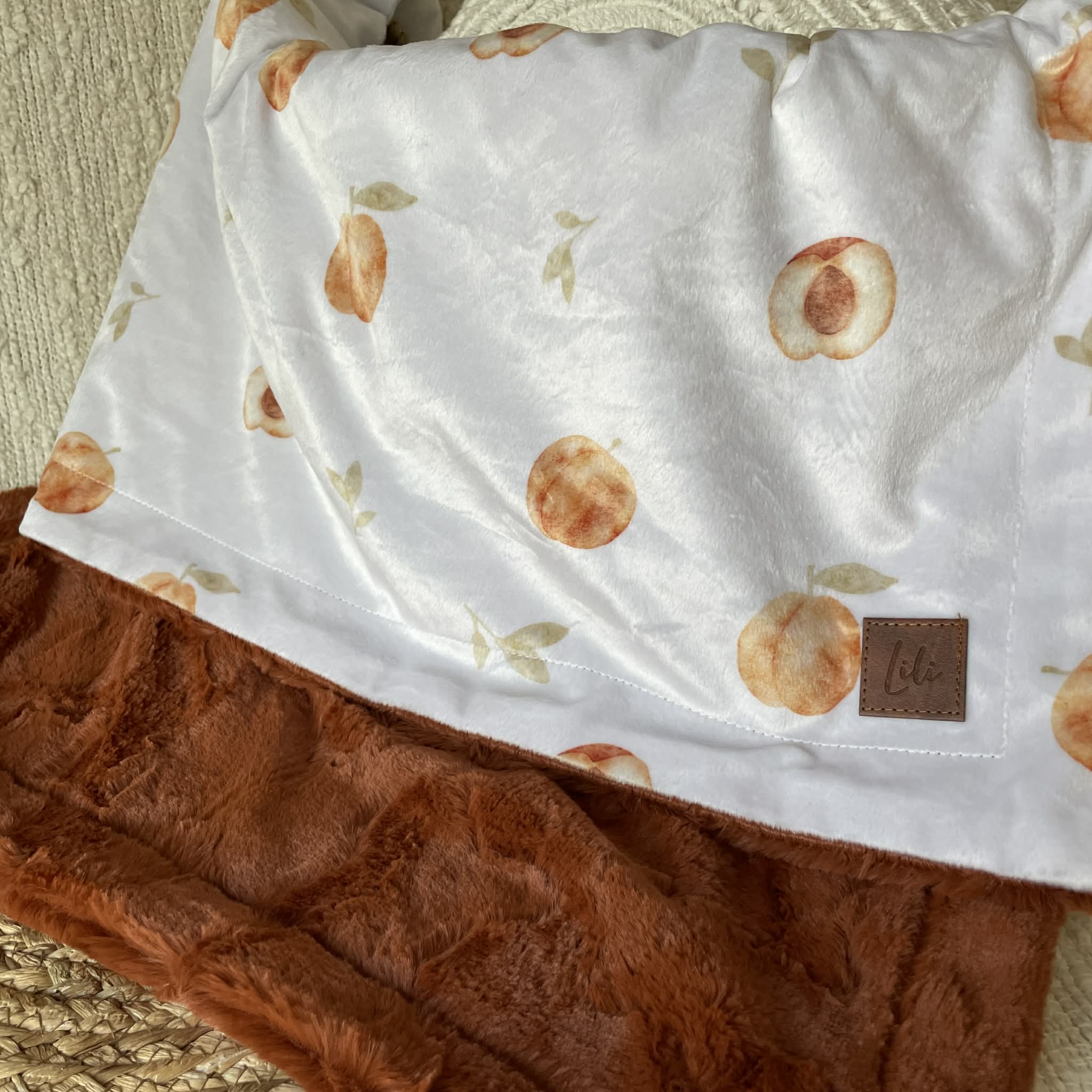 Un côté motif en minky imprimé au Québec ou en Amérique du Nord (pour certains motifs)