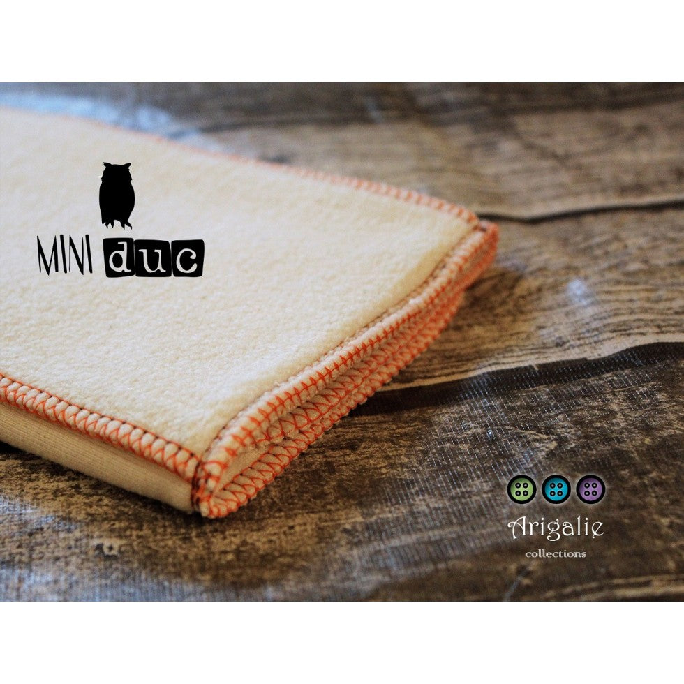 Trifold de deux épaisseurs (rectangle à plier en trois) de french terry de bambou/coton biologique conçu pour les petits bébés (couches nouveau-né) sur lequel nous avons cousu un booster en molleton de bambou/coton biologique performance.