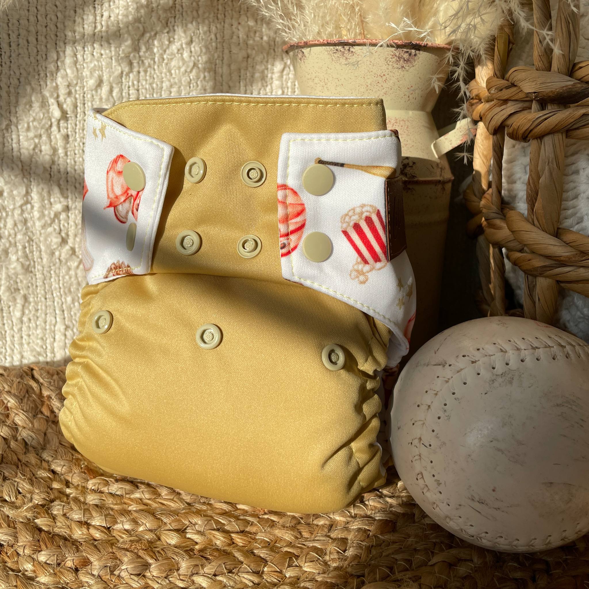 L’extérieur de la couche est fabriqué d'un polyester à motif sur toute la surface de la couche et celui-ci est entièrement doublé de tissu imperméable (PUL) 100% polyester. Notre couche tout motif est plus mince que notre couche wrap tout en étant aussi étanche !
