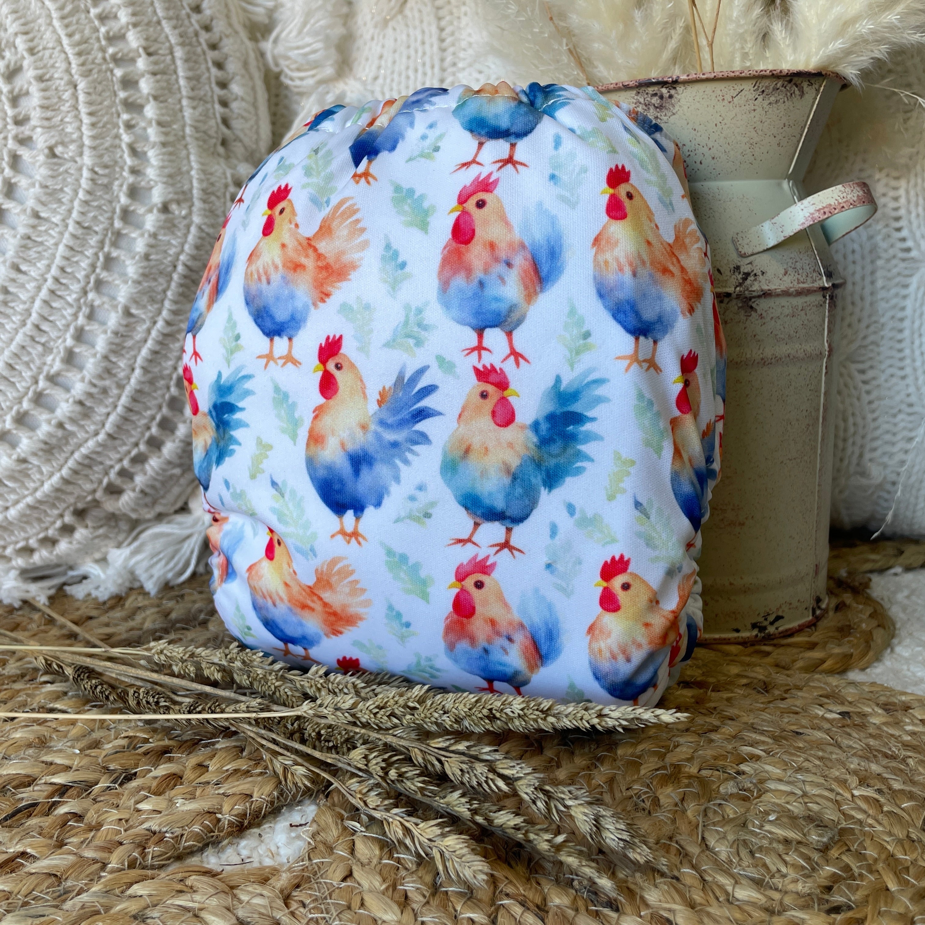 L’extérieur de la couche est fabriqué d'un polyester à motif sur toute la surface de la couche et celui-ci est entièrement doublé de tissu imperméable (PUL) 100% polyester. Notre couche tout motif est plus mince que notre couche wrap tout en étant aussi étanche !