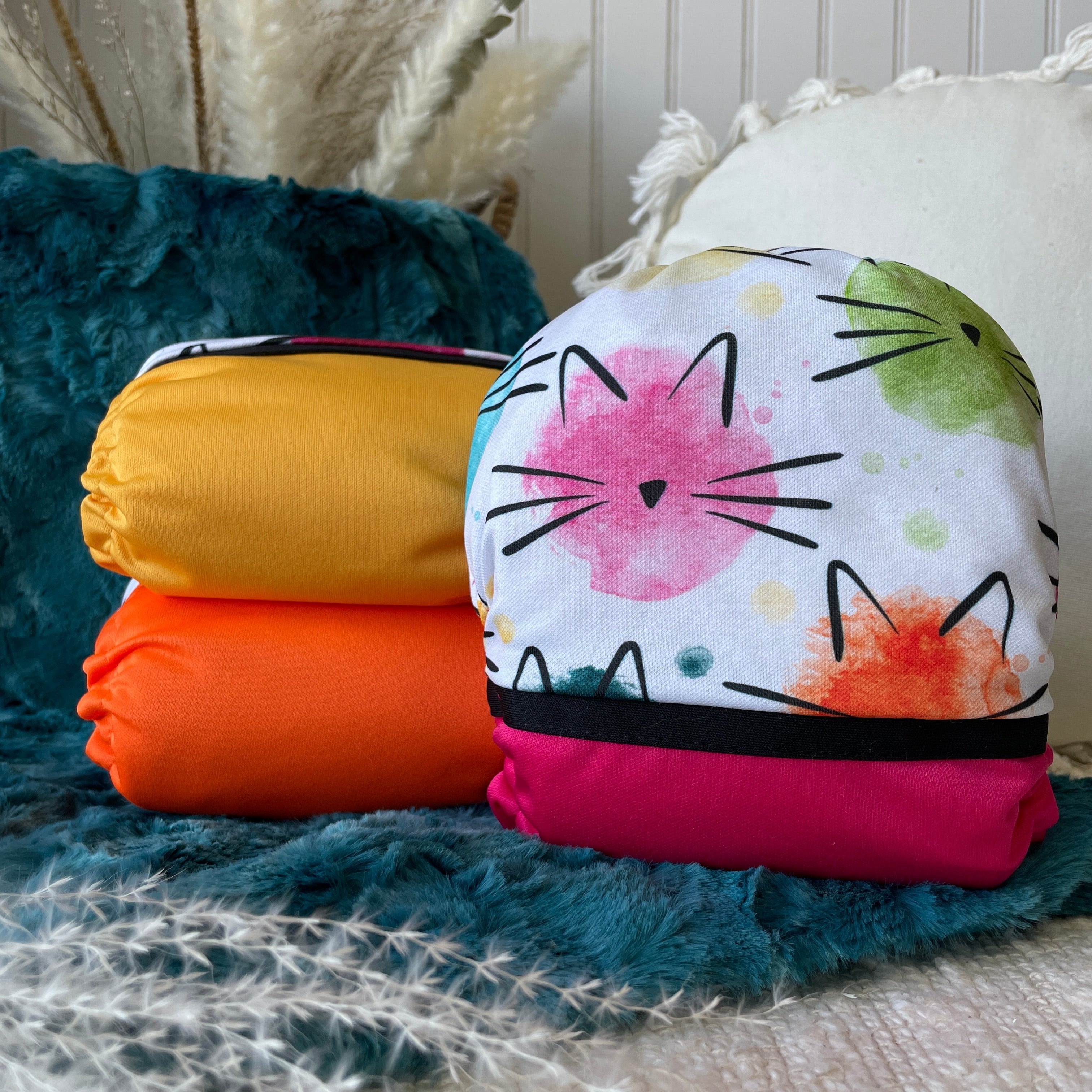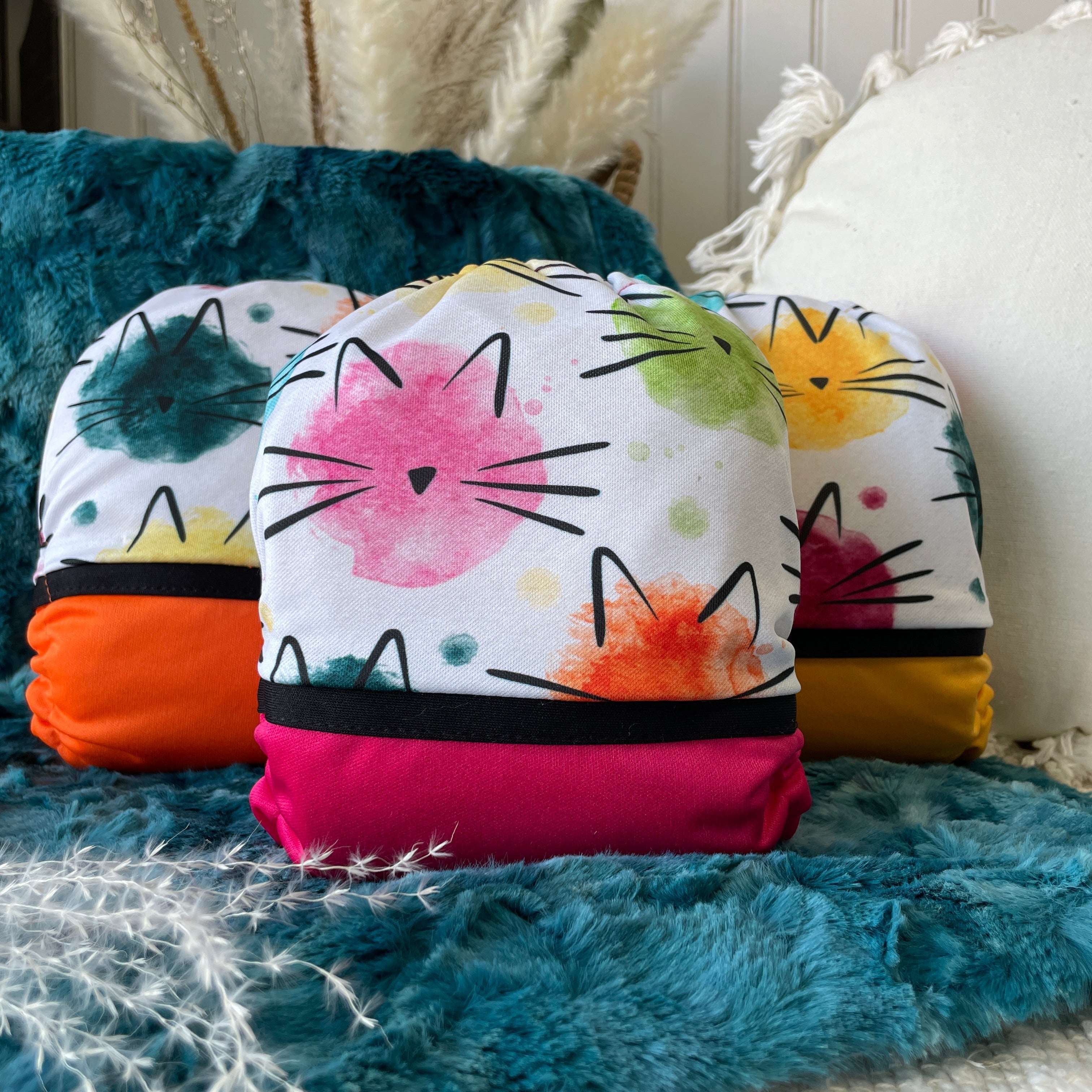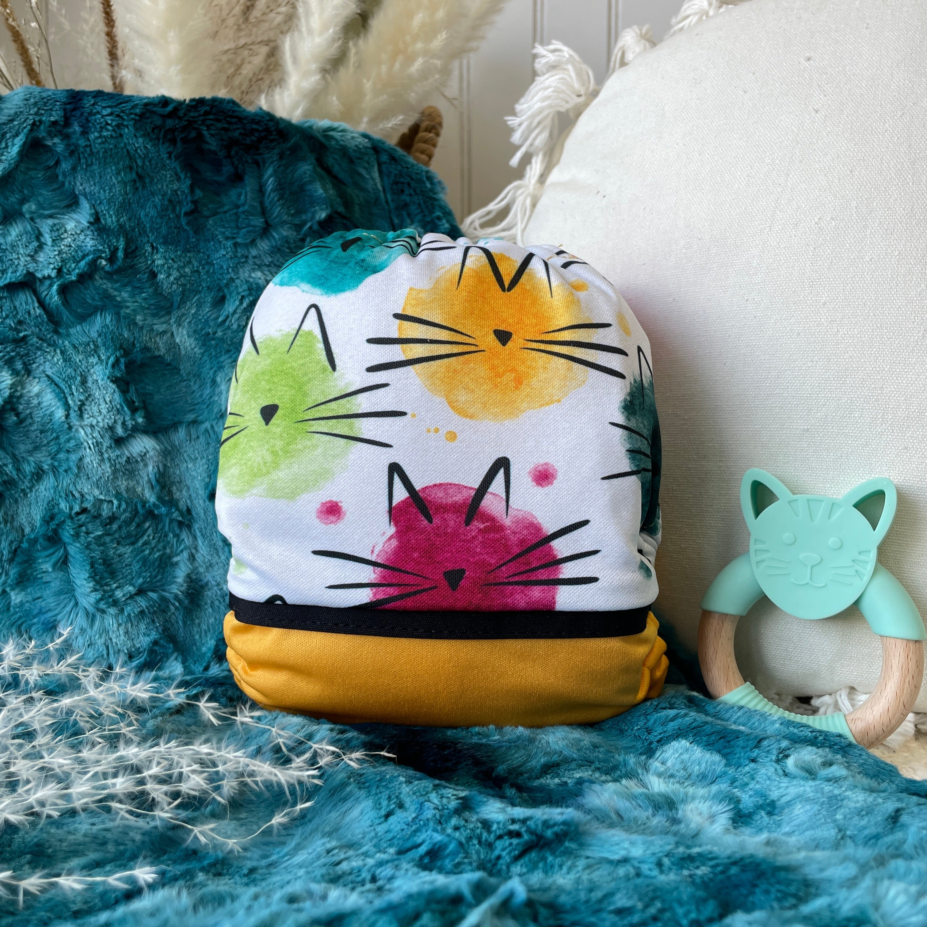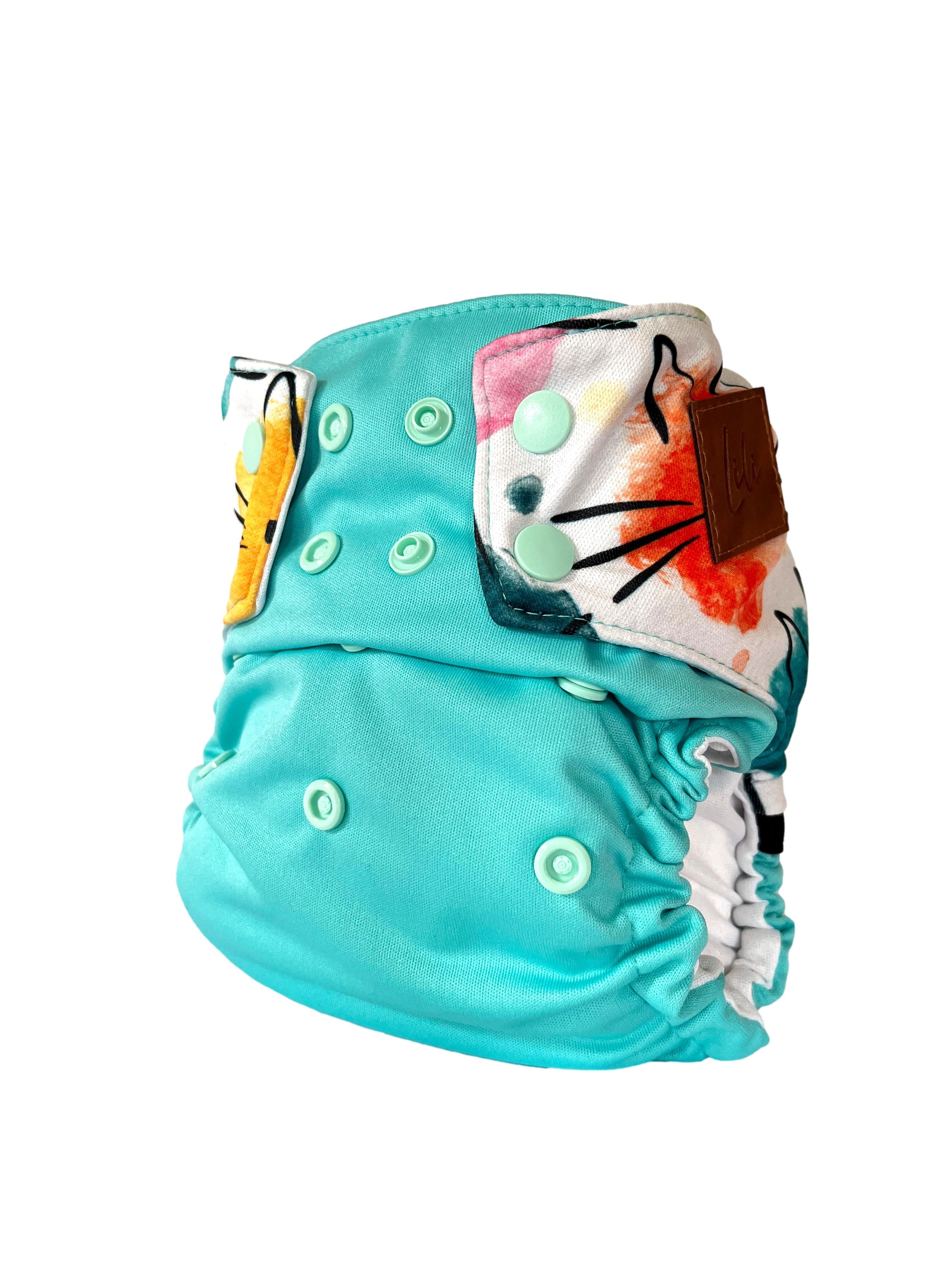 Couche lavable | taille unique | Drop Cats rainbow (wrap) (prêt à partir)