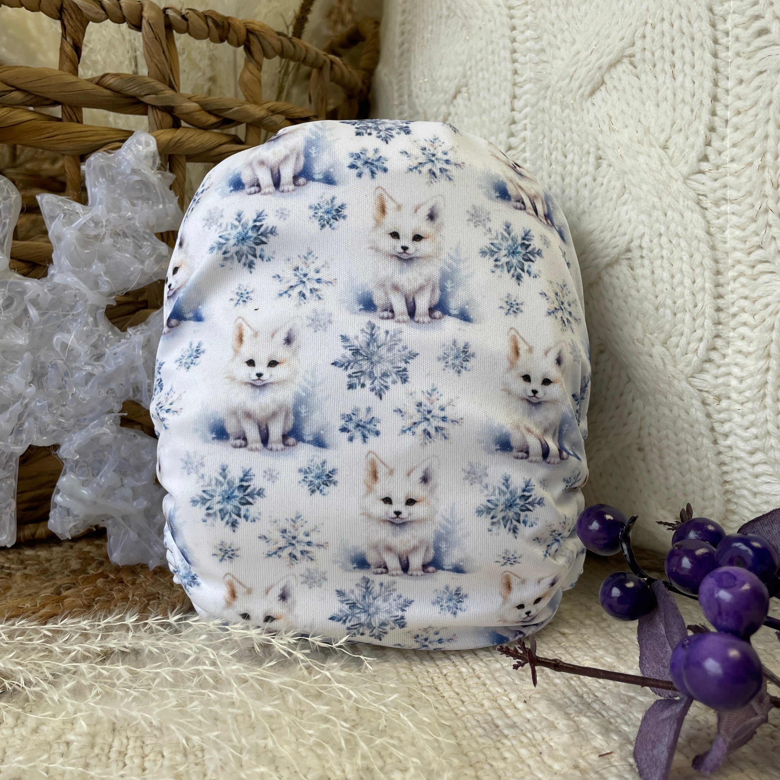 L’extérieur de la couche est fabriqué d'un polyester à motif et d'une doublure de tissu imperméable (PUL) 100% polyester.