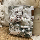 L’extérieur de la couche est fabriqué d'un polyester à motif sur toute la surface de la couche et celui-ci est entièrement doublé de tissu imperméable (PUL) 100% polyester. Notre couche tout motif est plus mince que notre couche wrap tout en étant aussi étanche !