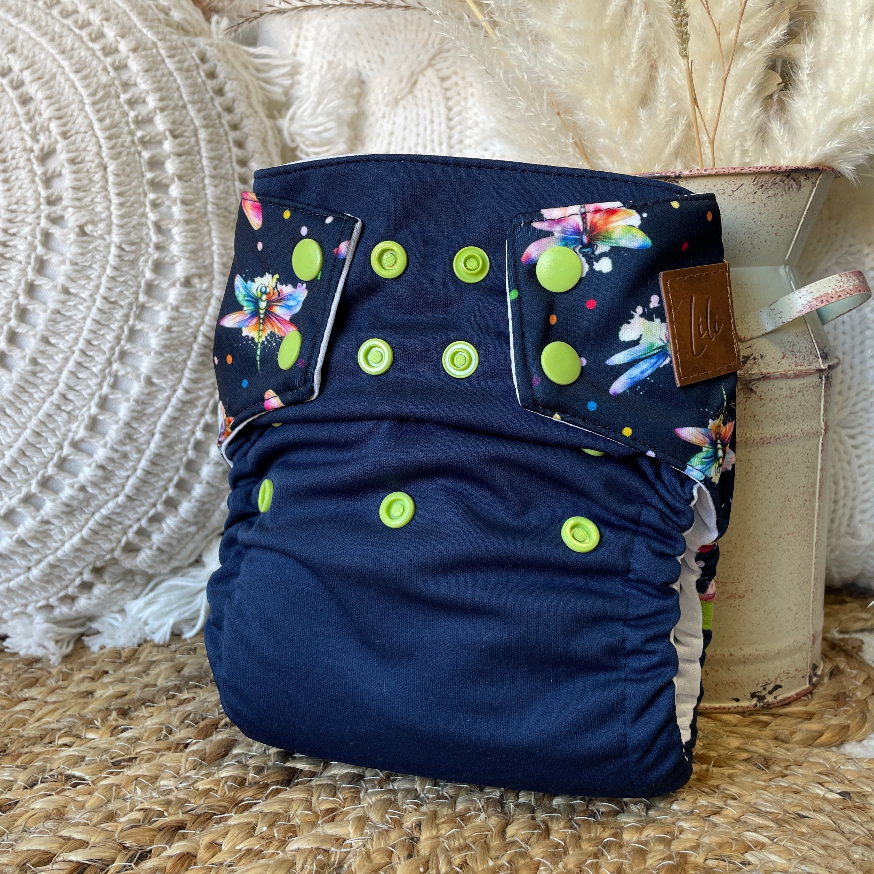 Couche lavable | taille unique | Libellule aquarelle (wrap)