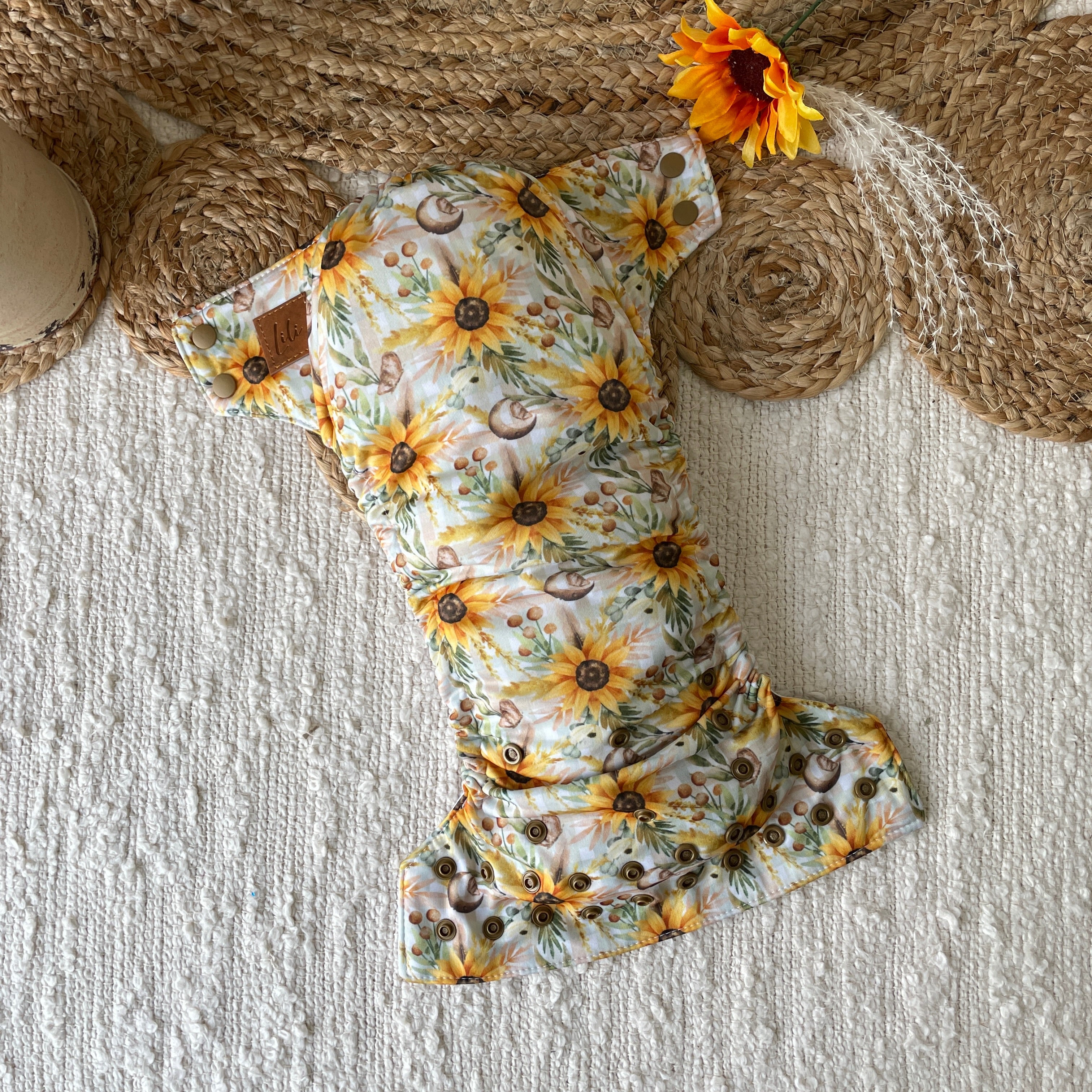 Couche lavable | taille unique | Tournesol champêtre (tout motif)