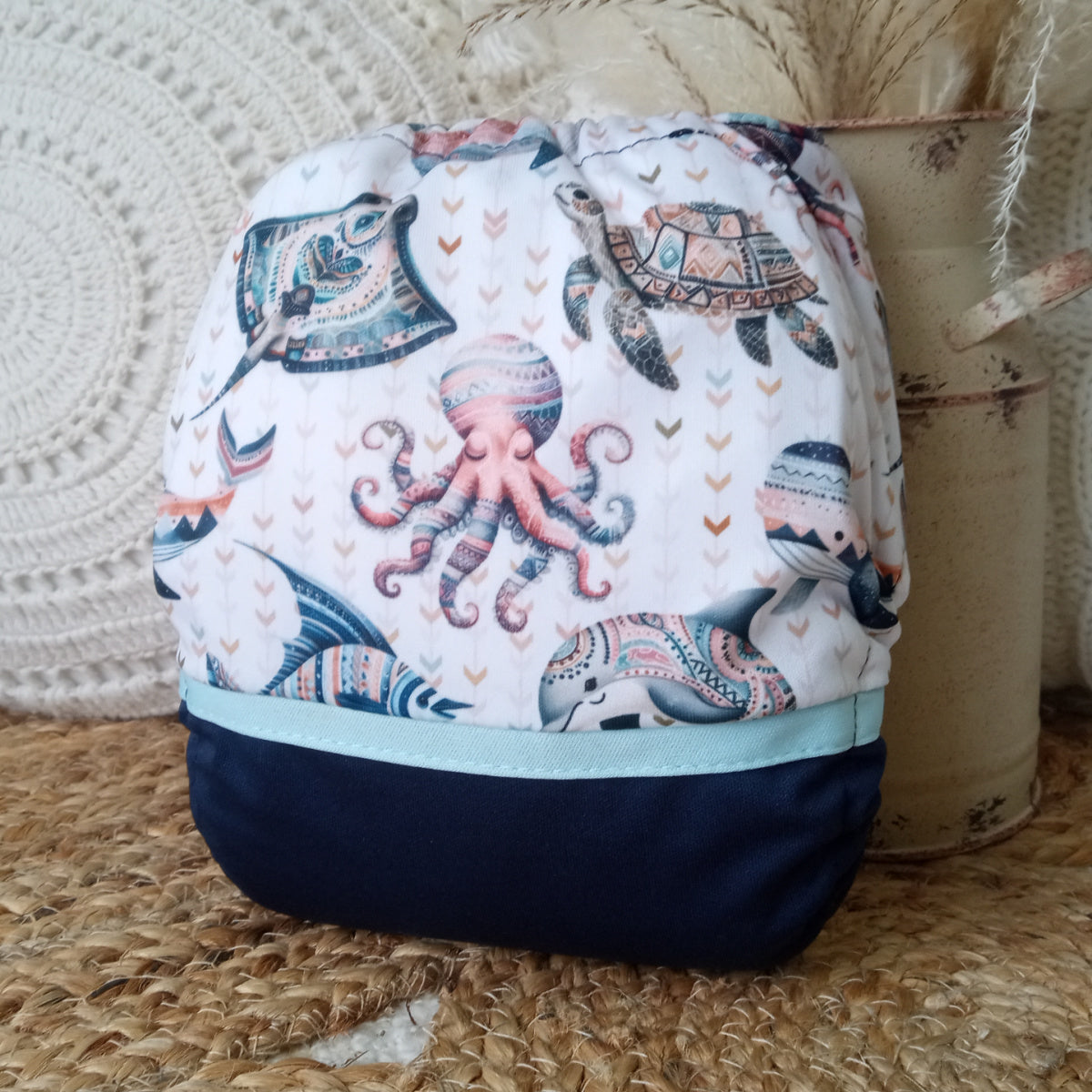 Couche lavable | taille unique | Vie marine (wrap)