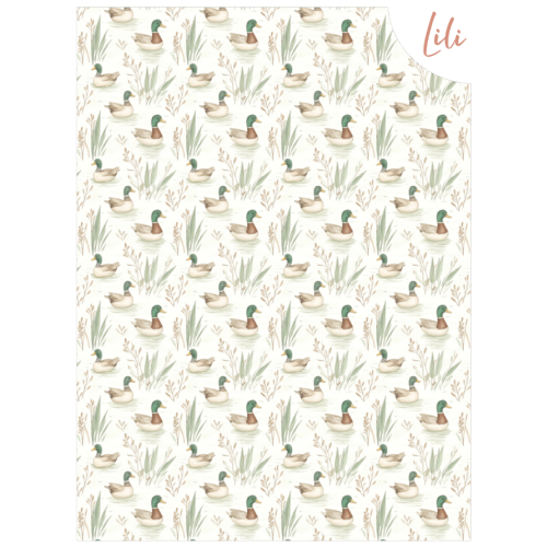 Un côté motif en minky imprimé au Québec ou en Amérique du Nord (pour certains motifs)