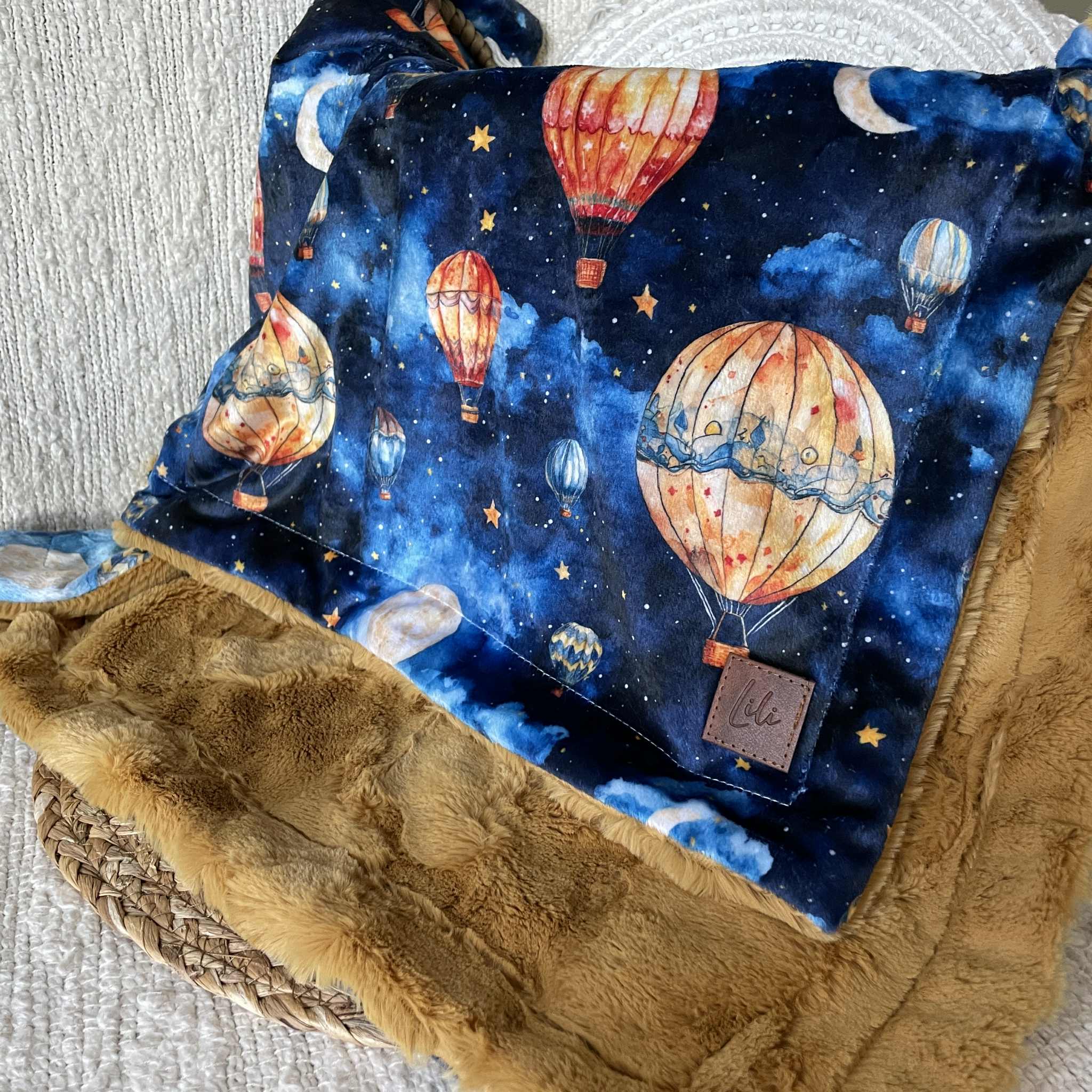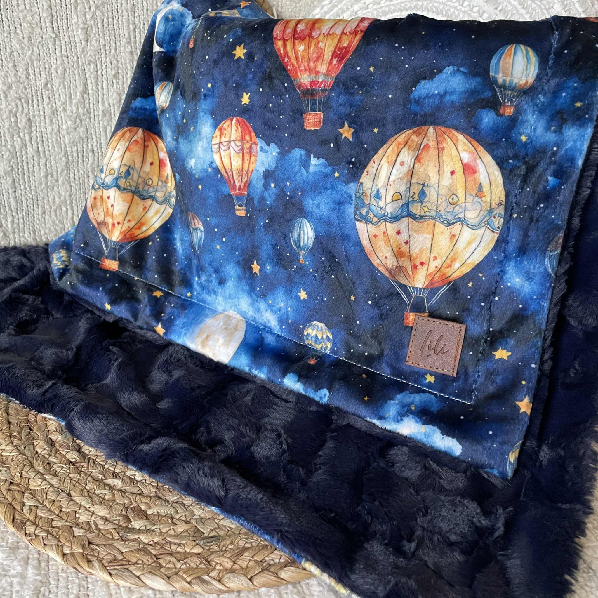Un côté motif en minky imprimé au Québec ou en Amérique du Nord (pour certains motifs)