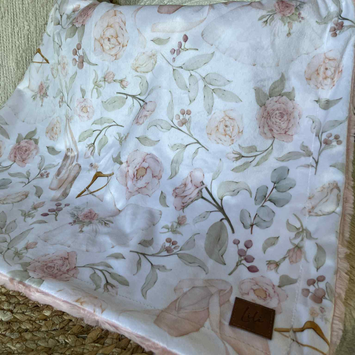 Un côté motif en minky imprimé au Québec ou en Amérique du Nord (pour certains motifs)