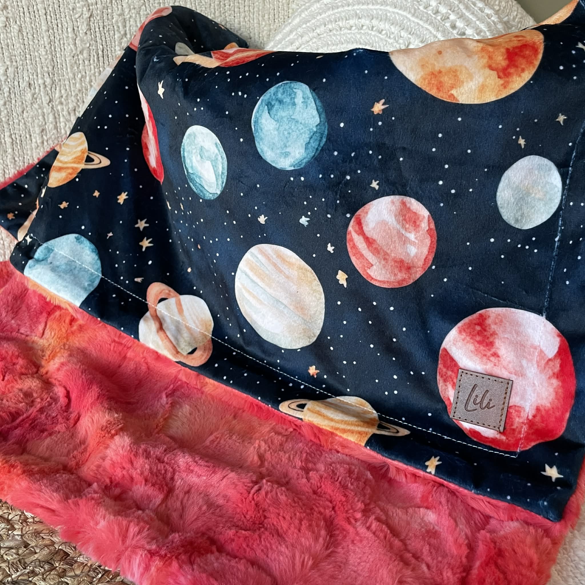 Découvrir notre couverture vous ouvre à un univers de réconfort. Le côté motif en minky est d'une douceur infinie et peut être doublé à l'endos de fourrure synthétique de la plus haute qualité sur le marché (aussi doux qu'un nuage) ou encore d'un tissu minky dot réconfortant. Plus qu'une simple couverture, elle deviendra la doudou de votre petit et il voudra la traîner partout avec lui.