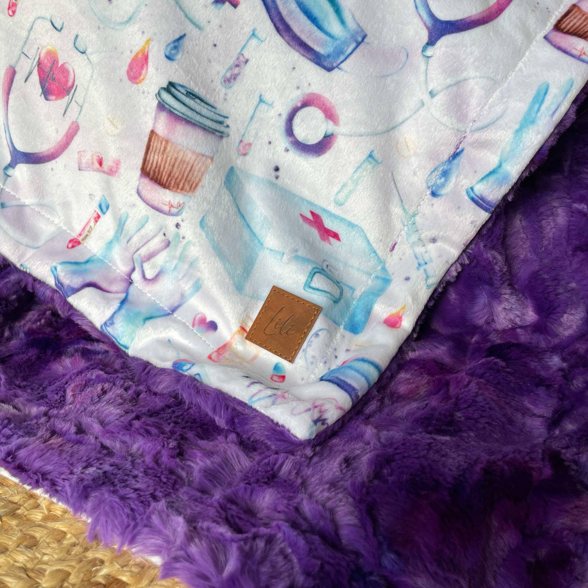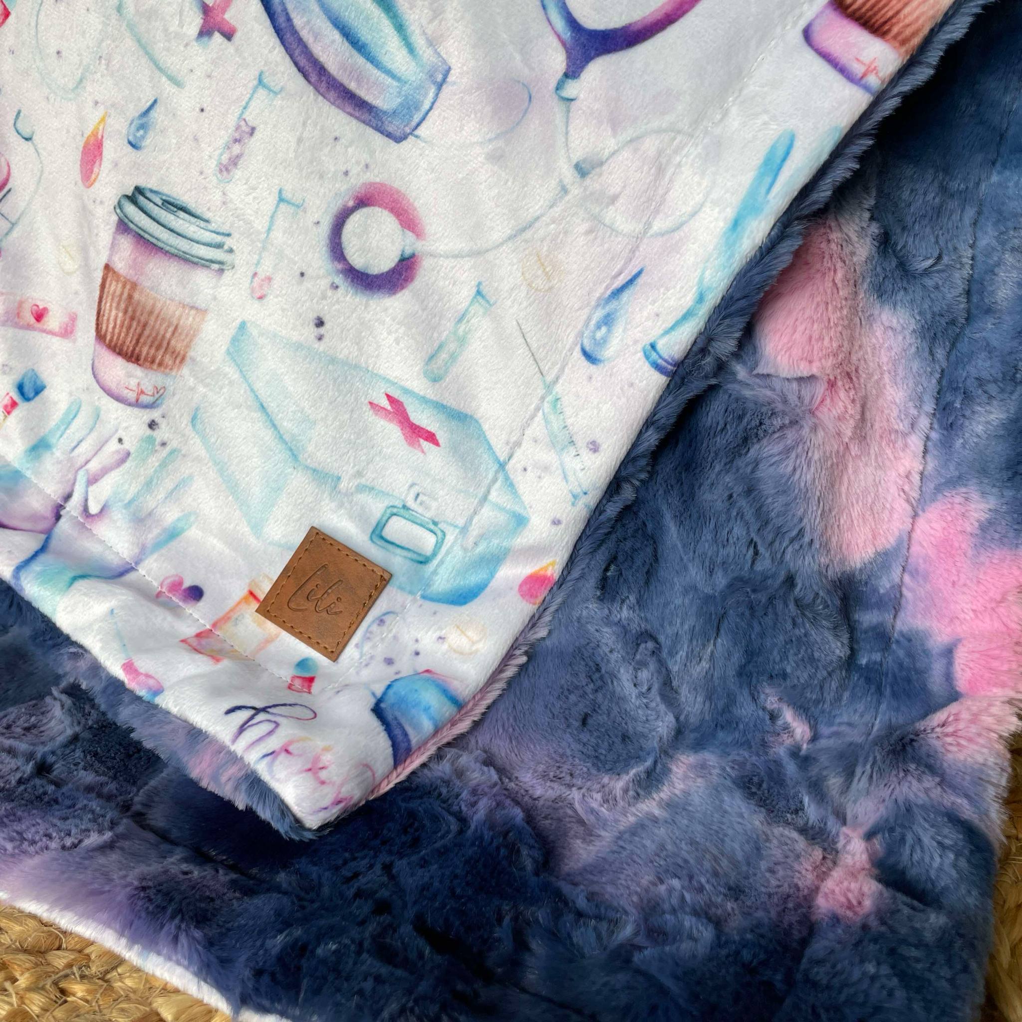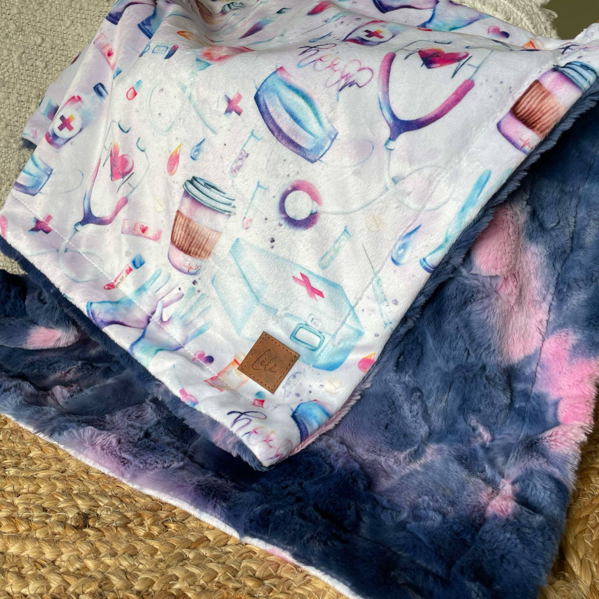 Un côté motif en minky imprimé au Québec ou en Amérique du Nord (pour certains motifs)