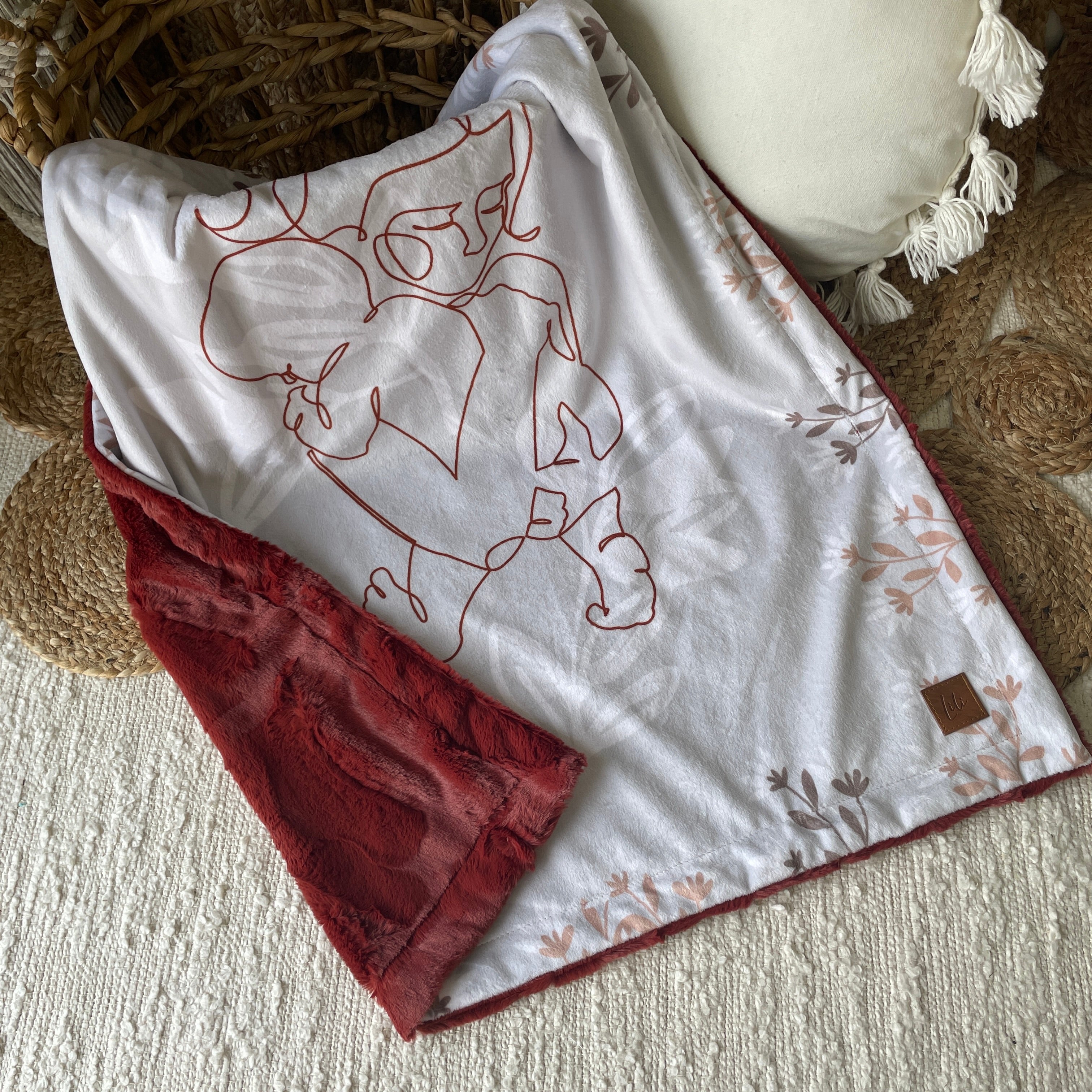 Découvrir notre couverture vous ouvre à un univers de réconfort. Le côté motif en minky est d'une douceur infinie et peut être doublé à l'endos de fourrure synthétique de la plus haute qualité sur le marché (aussi doux qu'un nuage) ou encore d'un tissu minky dot réconfortant. Plus qu'une simple couverture, elle deviendra la doudou de votre petit et il voudra la traîner partout avec lui.
