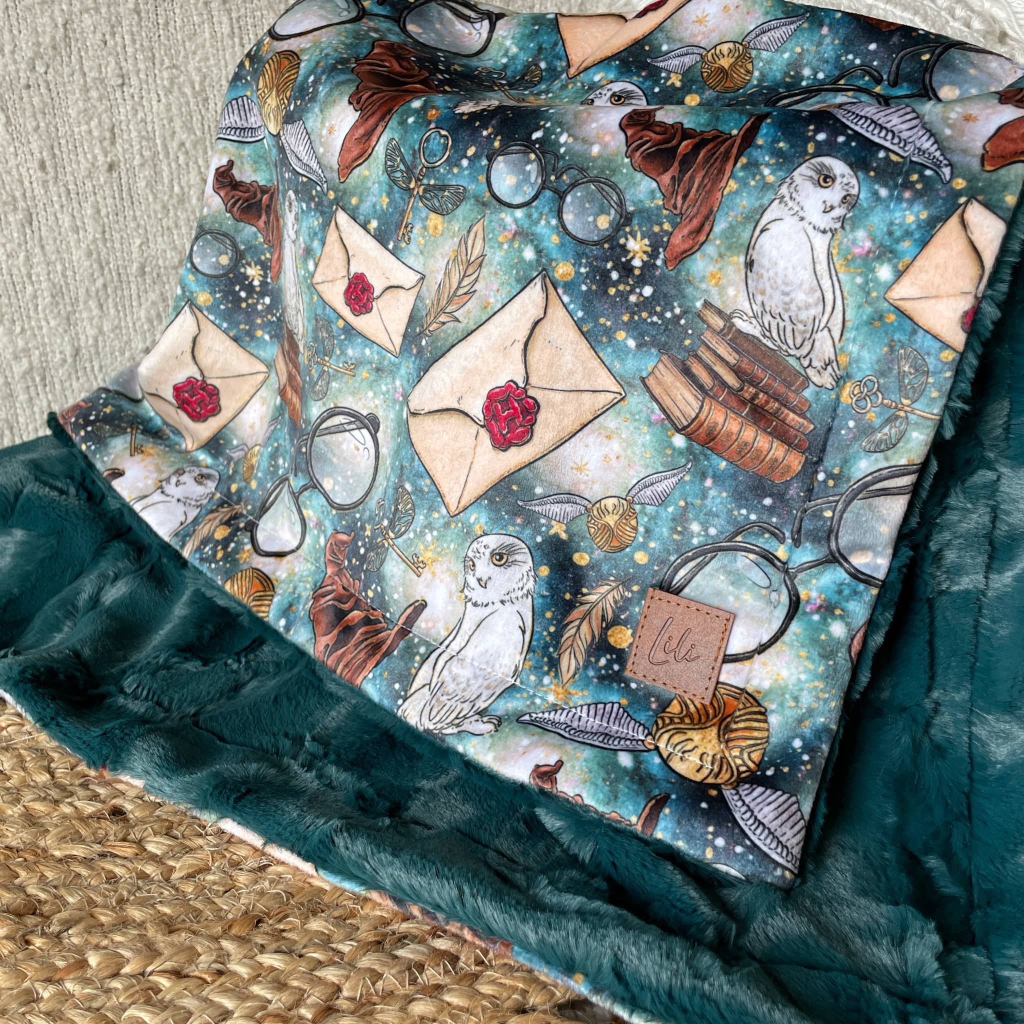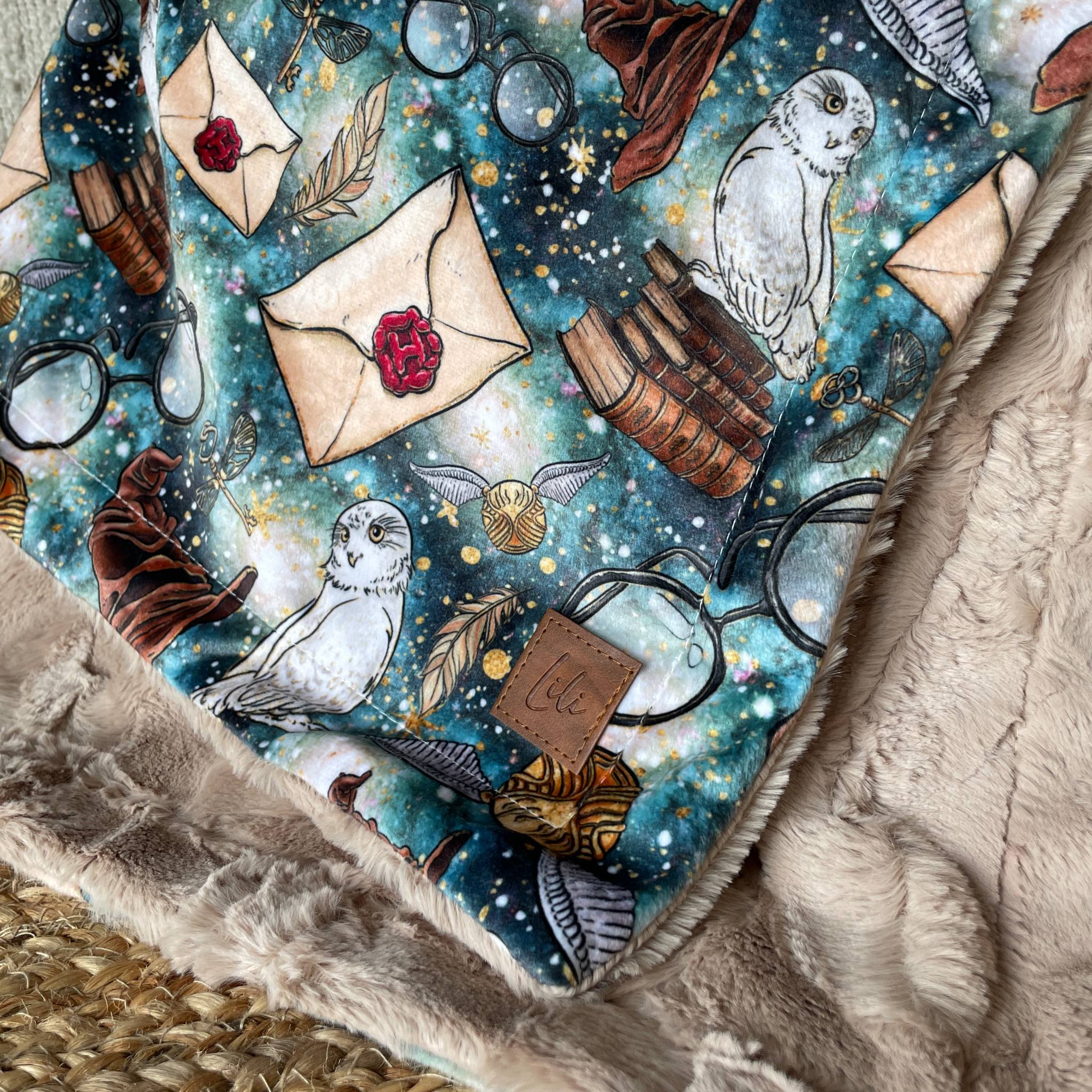 Un côté motif en minky imprimé au Québec ou en Amérique du Nord (pour certains motifs)