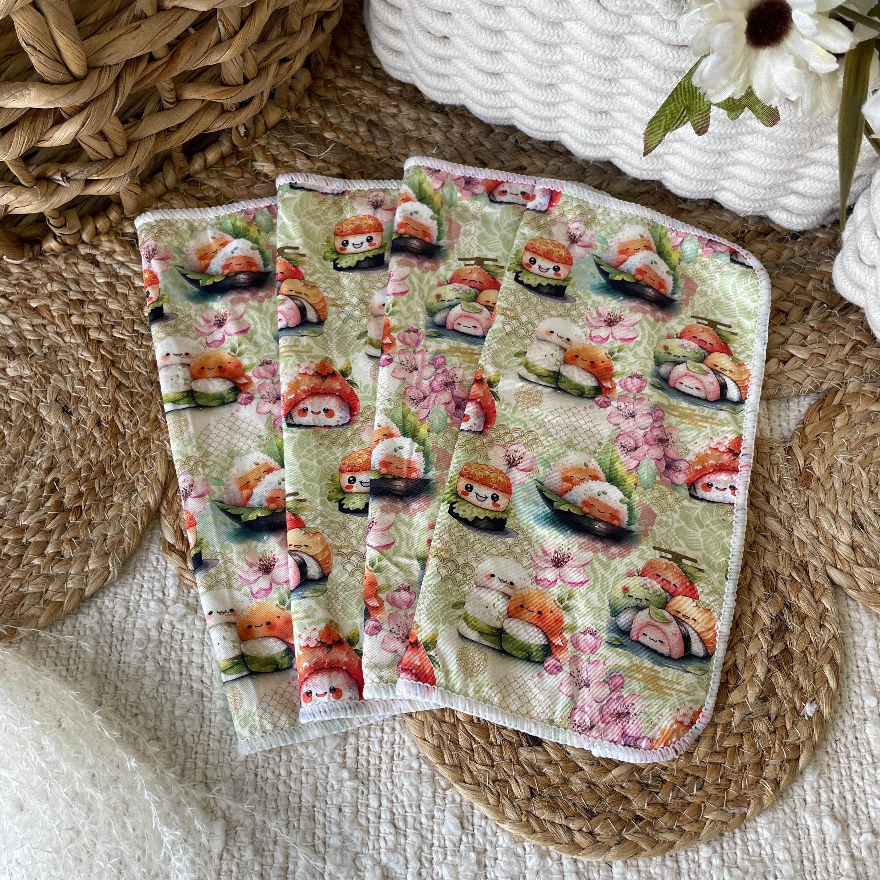 La Claire Fontaine | Ensemble de lingettes en coton et velour de bambou | Happy Sushis