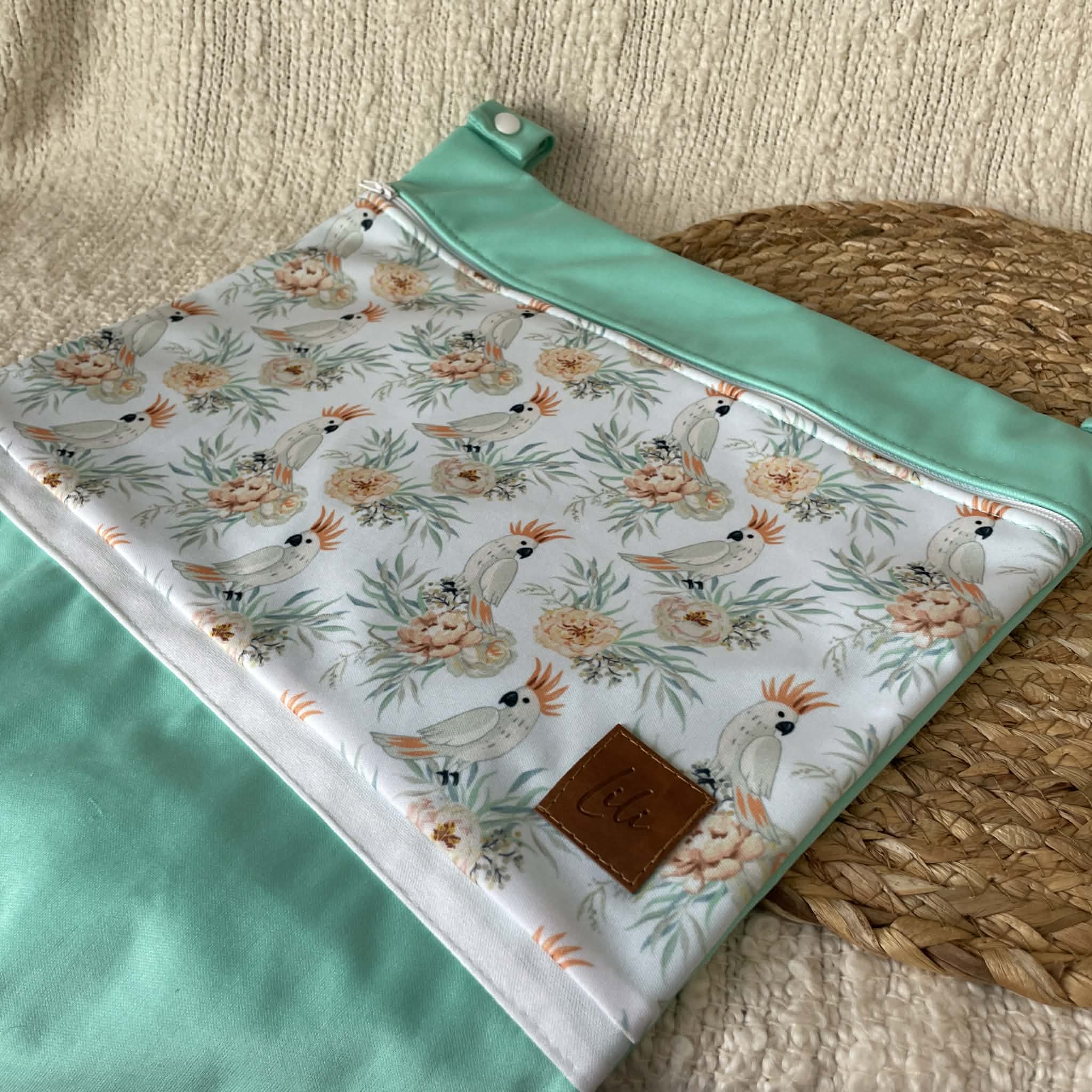 Il s’agit d’un sac à lessive que l'on peut suspendre pour couches souillées signé Les confections Lili. Le sac à suspendre est fabriqué de deux épaisseurs de polyester laminé (PUL) 100% polyester et d'une bande à motif pour un look des plus élégant.