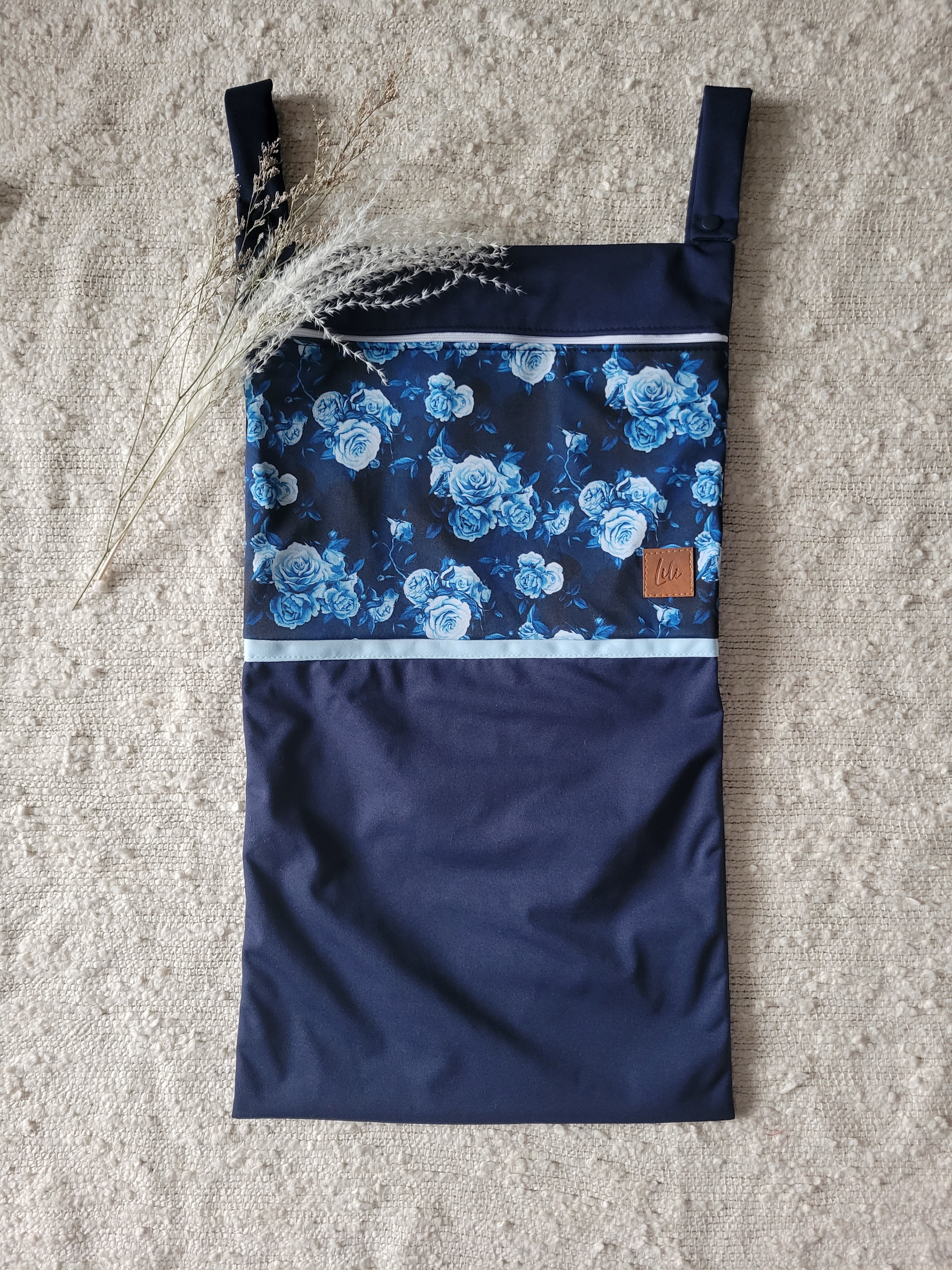 Il s’agit d’un sac à lessive que l'on peut suspendre pour couches souillées signé Les confections Lili. Le sac à suspendre est fabriqué de deux épaisseurs de polyester laminé (PUL) 100% polyester et d'une bande à motif pour un look des plus élégant.