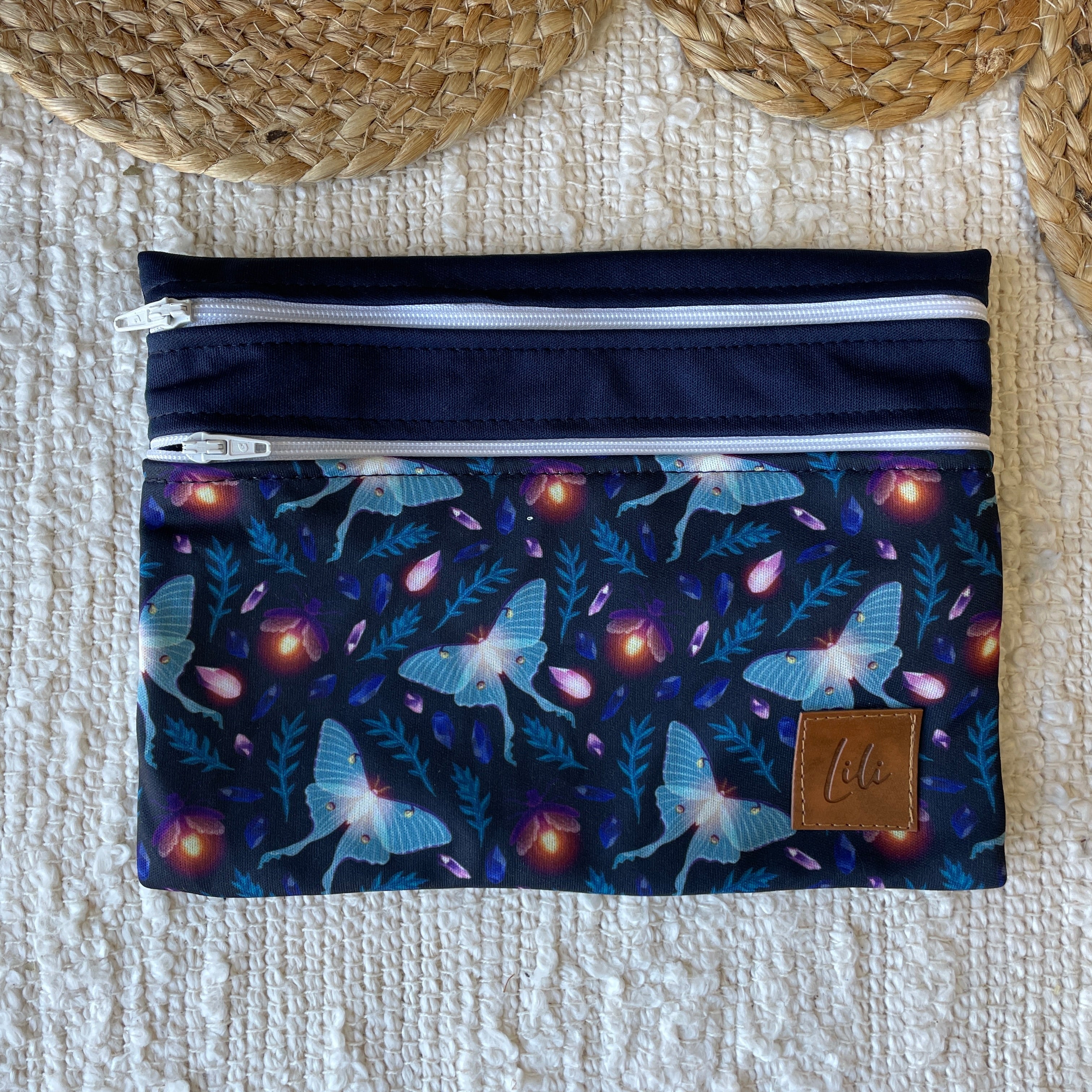 Le LiliMulti est le petit sac que vous voudrez transporter partout ! Format idéal pour le glisser dans le sac à couches ou bien dans votre sac à main pour transporter une foule de petites choses ! Il comporte deux compartiments imperméables distincts.