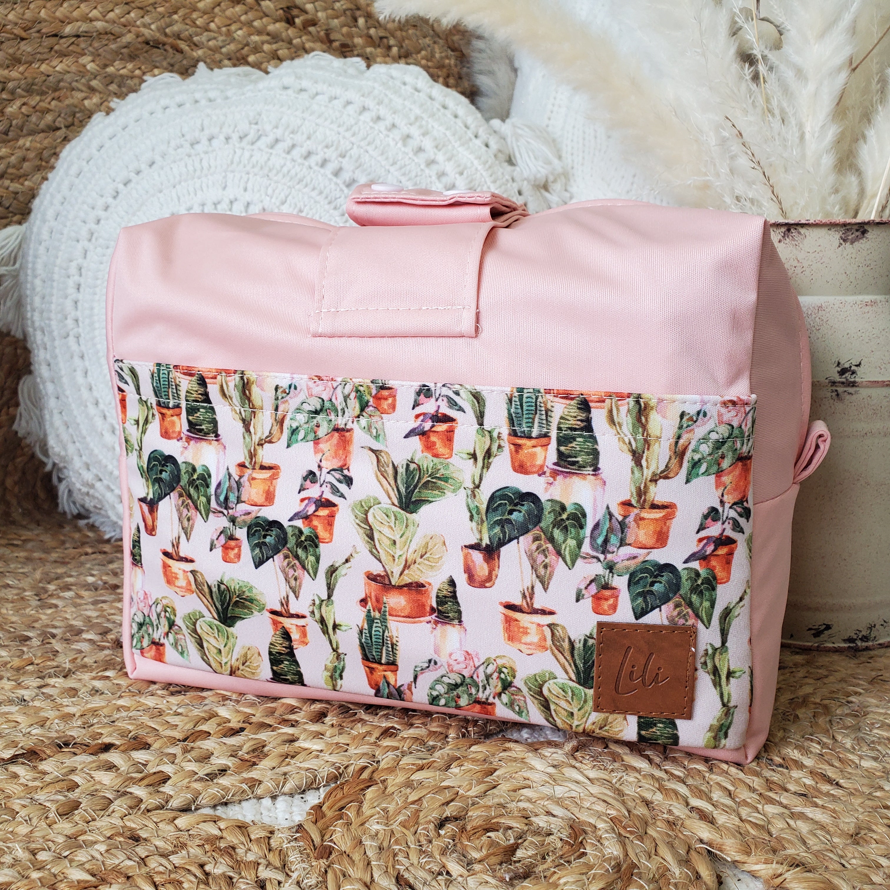 On y range 8 couches de taille unique avec un insert de jour Lili ou 6 avec un insert de nuit. Il contient une poche à motif à l'avant pour y ranger votre téléphone, portefeuille ou protège-carnet de santé. Il contient une autre poche à motif à l'arrière avec élastique pour vous permettre d'apporter des articles plus volumineux comme un paquet de lingettes humides par exemple ou bien une crème de change.